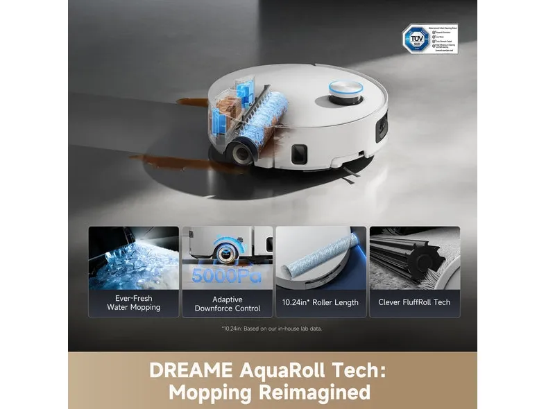 As the world's first AquaRoll™ robot vacuum, Dreame Aqua10 Ultra Roller pushes the boundaries of what a vacuum can do. It adapts to your floors without limitation, refreshes itself automatically, and navigates freely to tackle stubborn messes, delivering a smarter, easier solution for whole-home cleaning.