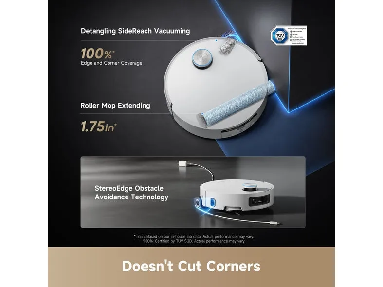 Edge-to-Edge Cleaning Upgraded with StereoEdge™ tech, its 3D vision spots trip-wires and awkward furniture legs instantly, weaving around them with natural precision like a pro. Now you no longer need to rescue a stuck robot.
