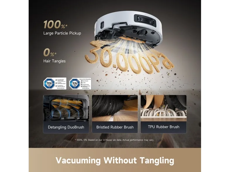 Incredible Suction Power The TurboForce motor delivers up to 30,000Pa suction power—lifting 100% particle and 99% hair more efficiently and quietly, like embedded dirt, stubborn pet hair, hidden debris, and more.