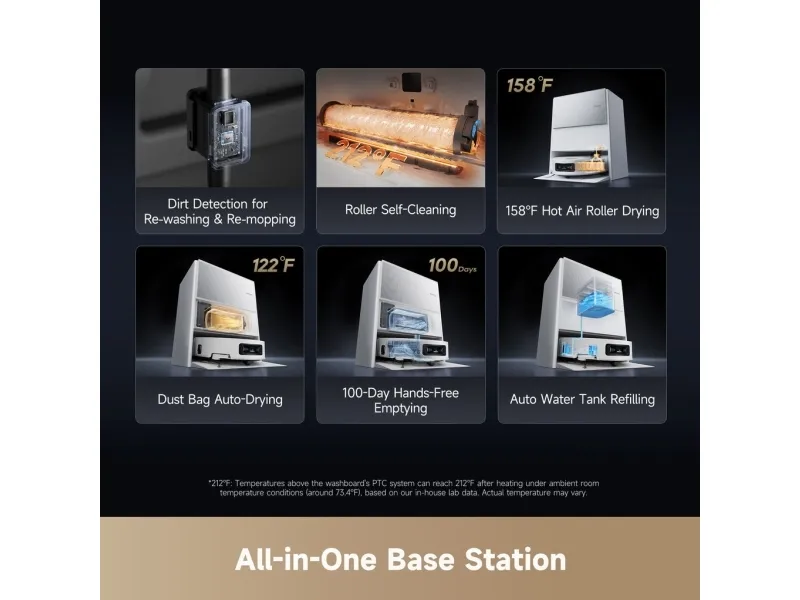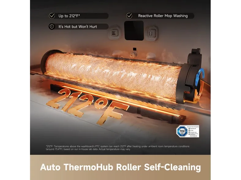 A Hot Self-Care Routine After every clean, the vacuum gets a 'hot bath' with the 212°F ThermoHub™ self-cleaning tech—scrubbing away grime and odors from the roller for a fresh start every time. Fast Cooling without Hurt The PTC system cools down quickly after cleaning, ensuring the washboard stays safe to touch for everyone in your home.