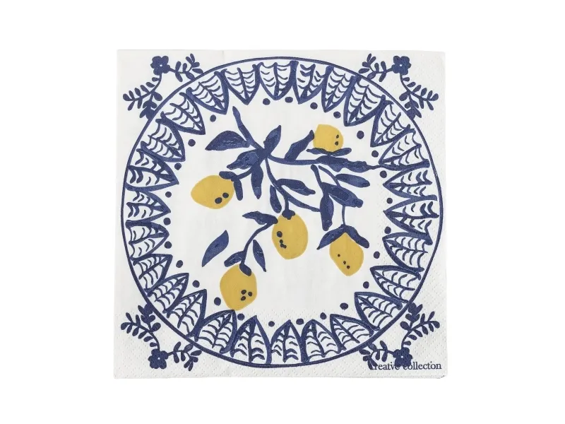 The Maxima Napkins by Creative Collection are made of paper and feature a delicate floral print in blue tones along with a lemon motif. They come in a pack of 12 and are ideal for both everyday use and festive occasions.