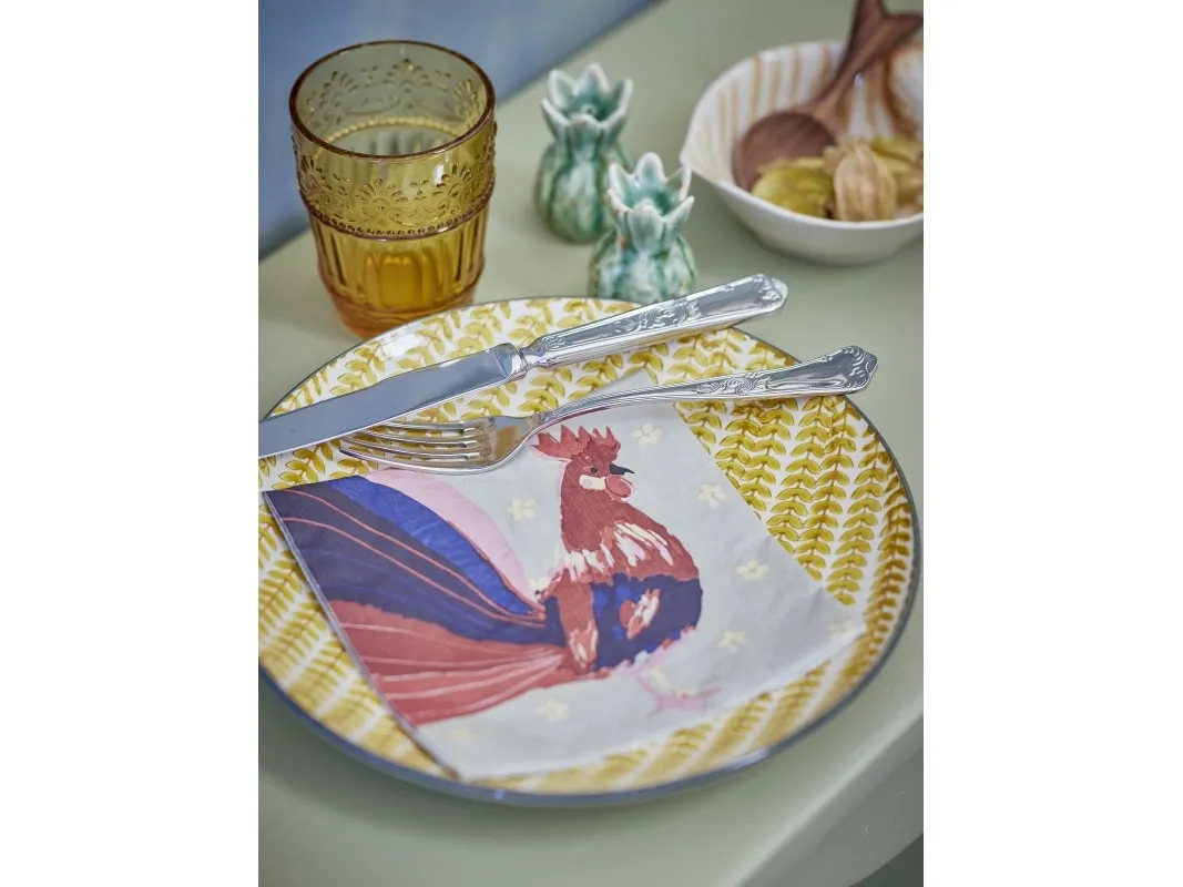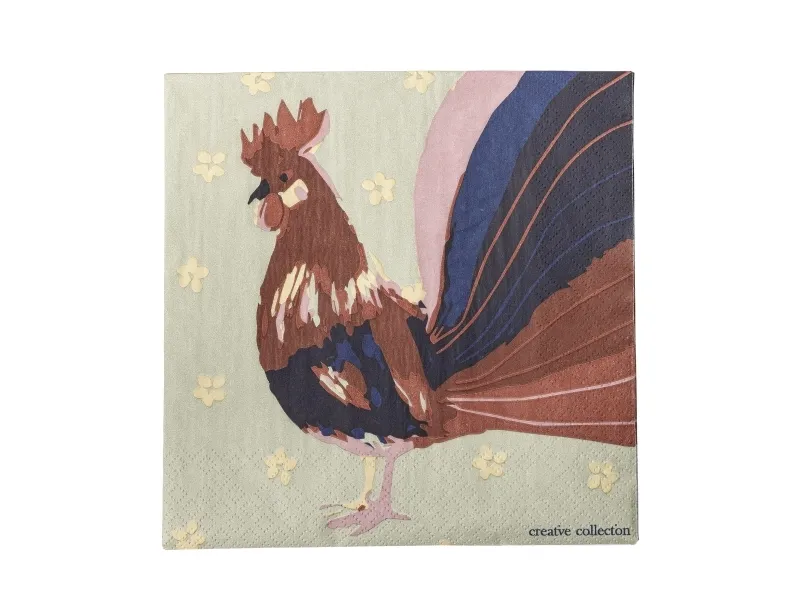 The Hanaia Napkin by Creative Collection is made of paper and features a colourful rooster motif on a light green background. The napkins come in a pack of 12 and are perfect for adding a lively and charming touch to the table setting.