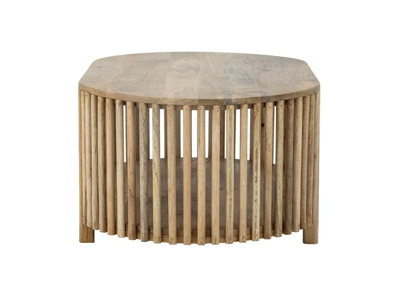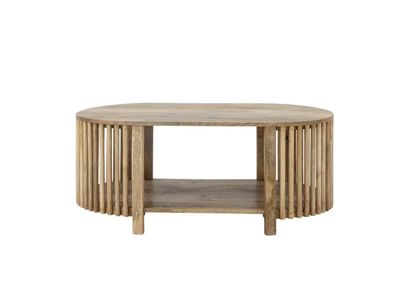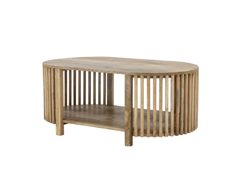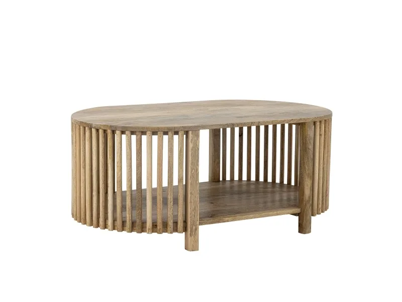 The Sali Coffee Table from Creative Collection is made of FSC®-certified mango wood in a decorative oval design with a practical storage shelf beneath the tabletop. The table is also ideal as a TV stand or for displaying coffee table books, vases, and other decorative items.