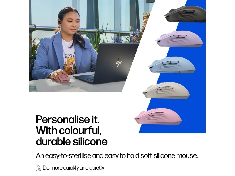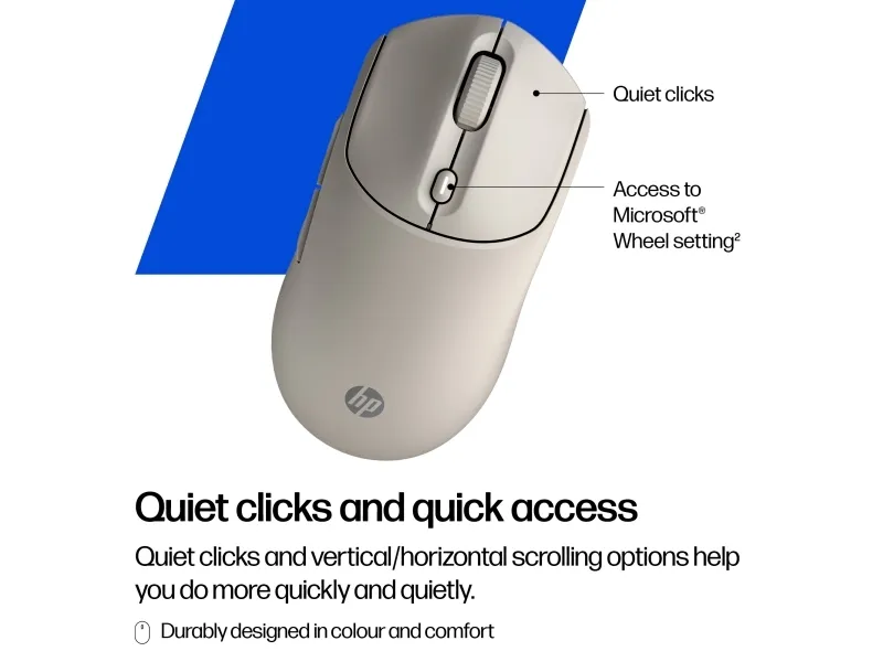 The HP 410 mouse delivers efficient and quiet performance for various computing tasks. Designed with wireless connectivity technology, it allows for a clean setup without the hassle of tangled cords. This mouse utilizes Bluetooth for reliable pairing with devices, making it a convenient choice for both home and office use.