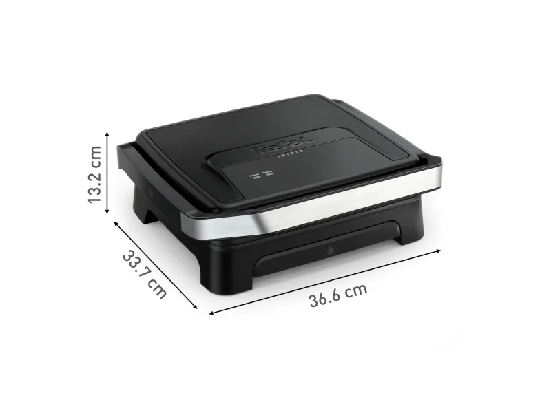 Tefal Inicio Classic Black GC271810. Product colour: Black, Stainless steel, Form factor: Rectangular, Top surface type: Grate. Power: 2180 W, Power plug type: Type C. Width: 366 mm, Depth: 337 mm, Height: 132 mm. Package width: 436 mm, Package depth: 190 mm, Package height: 374 mm. Products per intermodal container (20ft): 600 pc(s), Products per intermodal container (40ft): 1300 pc(s), Products per pallet layer: 12 pc(s)