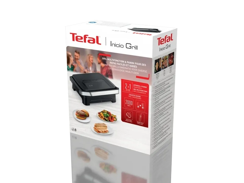 TEFAL Contact and Panini Grill | GC271810 Inicio Classic 2in1 | Grill | 2000 W | Black