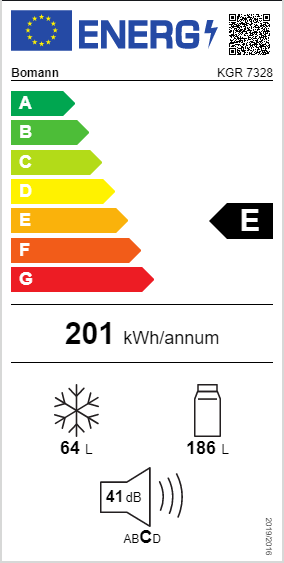 [OUTLET] - Bomann KGR 7328, 250 L, No Frost (jääkaappi), N-ST, 3 kg/24h, E, valkoinen