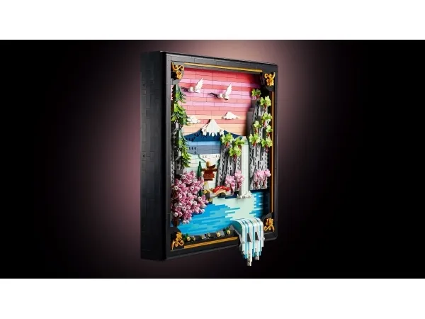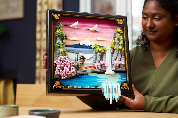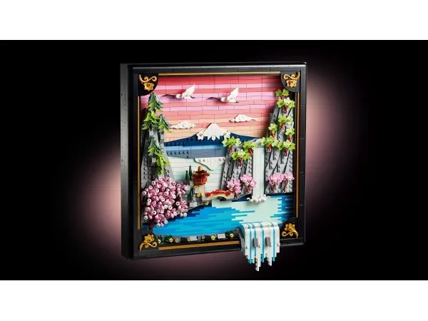 JAPANILAINEN TAIDETEOS – Aikuisille suunnatusta LEGO® Art setistä (31218) rakentuu japanilaista kirsikankukkamaisemaa esittävä yksityiskohtainen ja värikäs 3D-taideteos