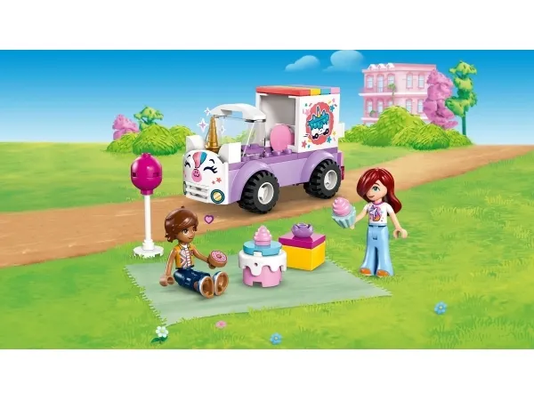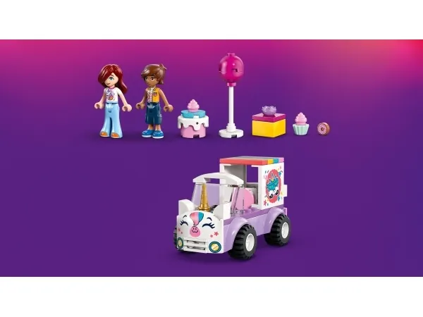 SYNTYMÄPÄIVÄAIHEISIA LELUJA – LEGO® Friends Yksisarviskakkuauto (42675) avaa alle kouluikäiselle oven oppimisen maailmaan lasten keksiessä syntymäpäivälahjan, kakun, ilmapallon ja donitsin inspiroimia tarinoita