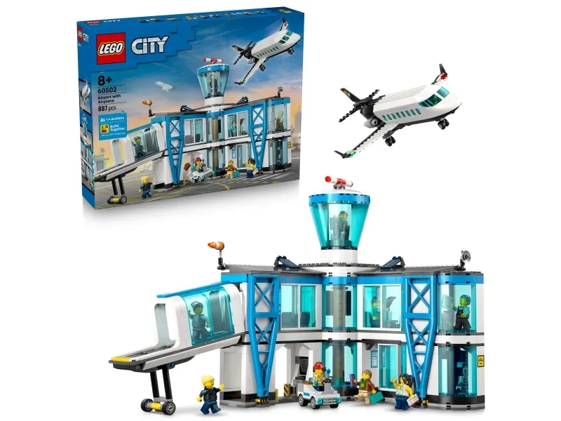 Yli 8-vuotiaille sopiva LEGO® City Lentokenttä ja lentokone setti (60502) on omiaan siivittämään leikkituokioita. Monipuolisella lentokentällä on runsaasti tutkittavaa. Lapset voivat kuljettaa matkatavaroita leluskannerin läpi, kääntää metallinilmaisinta paljastaakseen röntgenkuvassa näkyvän luurangon ja muokata lähtötaulua, jolla näkyy 4 määränpäätä. Settiin sisältyy myös hieno lentokone, jossa on yksityiskohtainen matkustamo ja alas taitettavat portaat, sekä hinausauto ja matkustajasilta. Yhdessä 9 minihahmon kanssa ne innostavat lapsia tuntikausien leikkeihin. Lentokenttälelu on loistava lahjaidea lentokoneista ja LEGO rakennusseteistä pitäville lapsille, pojille ja tytöille. Yhdessä muiden, erikseen myytävien LEGO City lelujen kanssa setti mahdollistaa vielä huikeammat seikkailut. LEGO Builder sovelluksen Build Together ‑toiminnon avulla ystävät ja perheenjäsenet voivat yhdistää voimansa, ja kaikki pääsevät osallistumaan hauskanpitoon rakentamalla osan setistä oman laitteensa avulla. Setissä on 887 osaa.