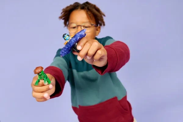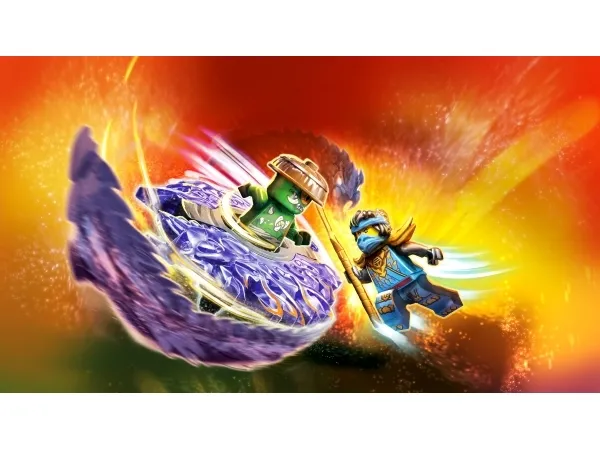 3. 2 NINJAGO®-MINIHAHMOA – Vauhdikkaita hyvän ja pahan välisiä taisteluita siivittävän lasten seikkailulelun mukana tulee Nya ja ilkeä mutaatiohirviö, jonka voi laittaa spinnerin kyytiin