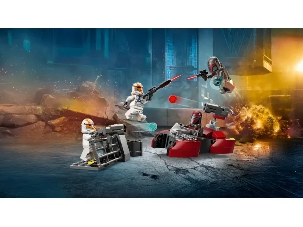 Barrikadille sijoitettu nuppisädease vastaa kiiturin nuppipyssyn tulitukseen. Rakettireput selässään kommandot voivat hyökätä ilmasta käsin. Rakennuslelun monipuoliset tarvikkeet ruokkivat lasten mielikuvitusta, ja setti on upea pieni lahja yli 6-vuotiaille pojille, tytöille ja Star Wars ‑faneille. Muut taistelupakkaukset (setit myydään erikseen) tuovat leikkeihin entistä enemmän ulottuvuuksia.