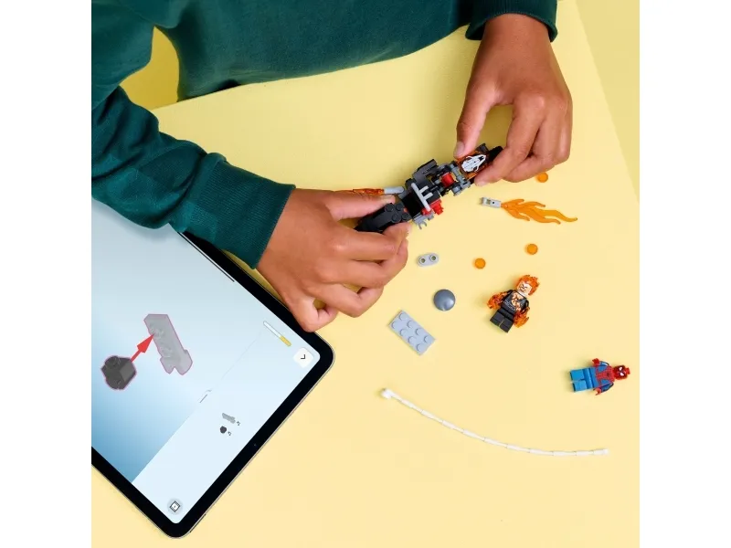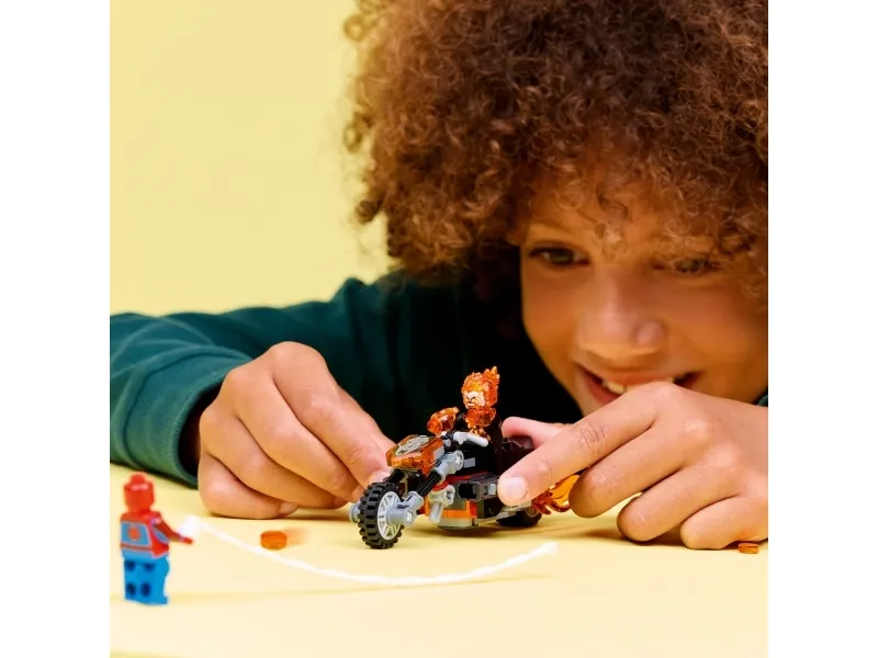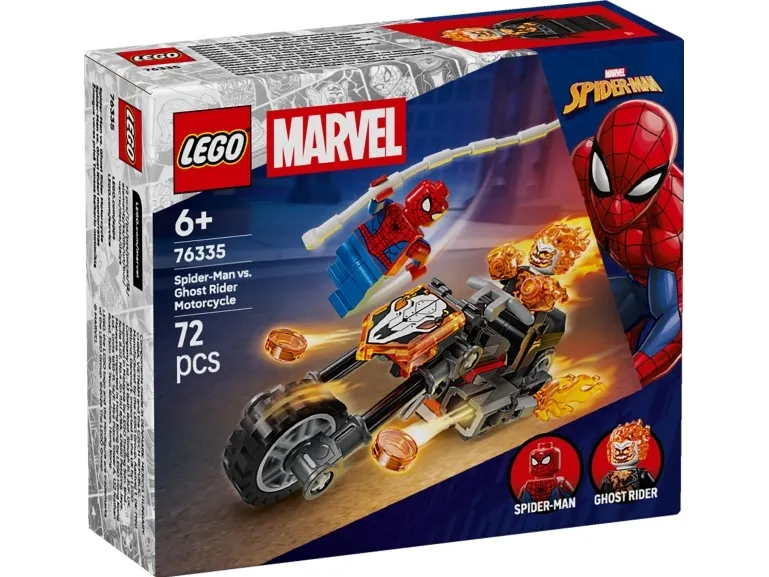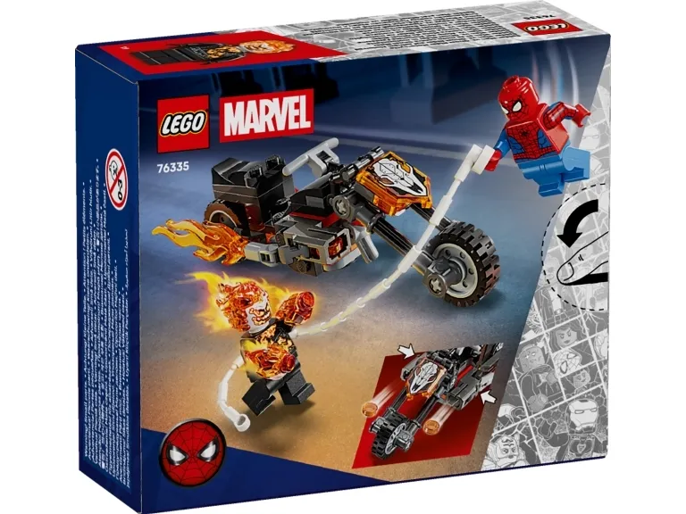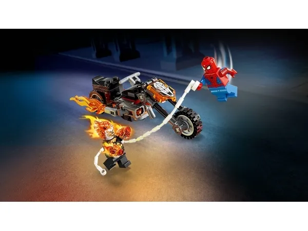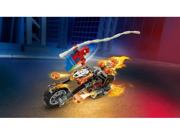 Aaveajajan minihahmo on luuranko, jonka pää ja kädet ovat liekeissä. Legendaarisessa moottoripyörässä on 2 liekehtivää pakoputkea ja 2 sisäänrakennettua nuppipyssyä. Spider-Man-minihahmon seittiköyden voi kiinnittää moottoripyörään. Hahmojen taistelut vauhdikkaan menopelin selässä inspiroivat loputtomiin mielikuvitusleikkeihin. Setti on mainio syntymäpäivälahjaidea pienille supersankareille, LEGO rakentelijoille ja Spider-Man-keräilytuotteiden ystäville. LEGO Builder sovellus selkeine digitaalisine ohjeineen antaa lapsille itsevarmuutta rakentamiseen. Sovelluksessa he voivat zoomata ja kiertää malleja 3D-näkymässä sekä seurata edistymistään. Rakennussetissä on 72 osaa.