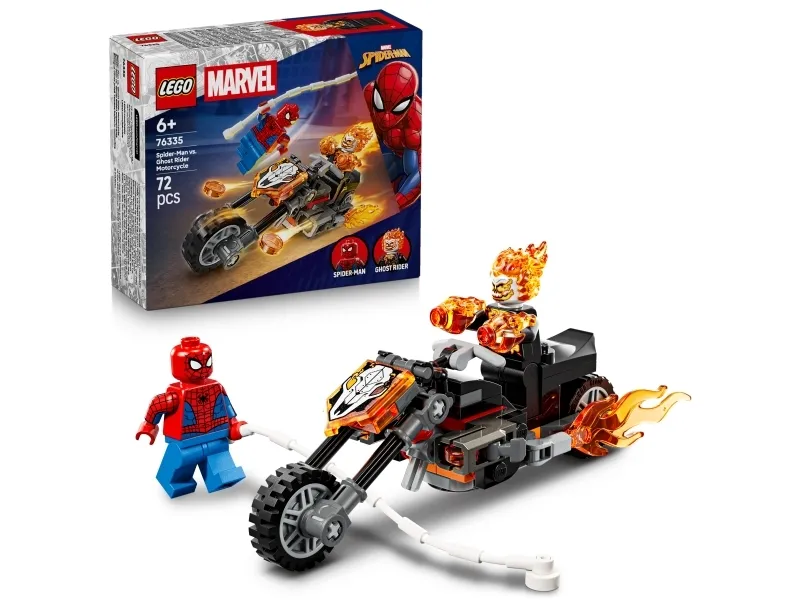 1. SPIDER-MAN-MOOTTORIPYÖRÄLELU – LEGO® ǀ Marvel Spider-Man vastaan Aaveajajan moottoripyörä (76335) rakennussetin parissa 6 vuotta täyttäneet pojat ja tytöt voivat voit kurvata keskelle supersankarien taisteluita