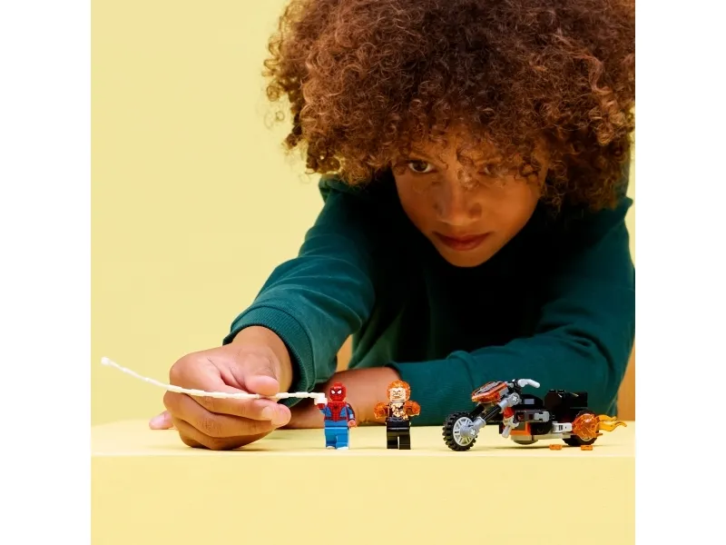 4. HUIKEITA TAISTELUITA – Lapset voivat leikkiä vauhdikkaita takaa-ajoja, joissa Spider-Man heittää seittiköytensä kohti Aaveajajan moottoripyörää liekkien ryöpytessä pakoputkesta ja pahiksen käsistä