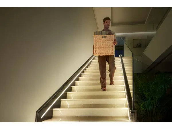 Philips OmniGlow. Type: Universal strip light, Suitable for light type: Ambience, Suitable location: Bedroom, Kitchen, Living room. Light colour: Multi, Bulb type: LED, Total power: 60 W. Cable length: 1.5 m. Power source type: AC, Energy efficiency class: G, Power consumption (standby): 0.5 W. Length: 10000 mm, Width: 17 mm, Thickness: 8.7 mm