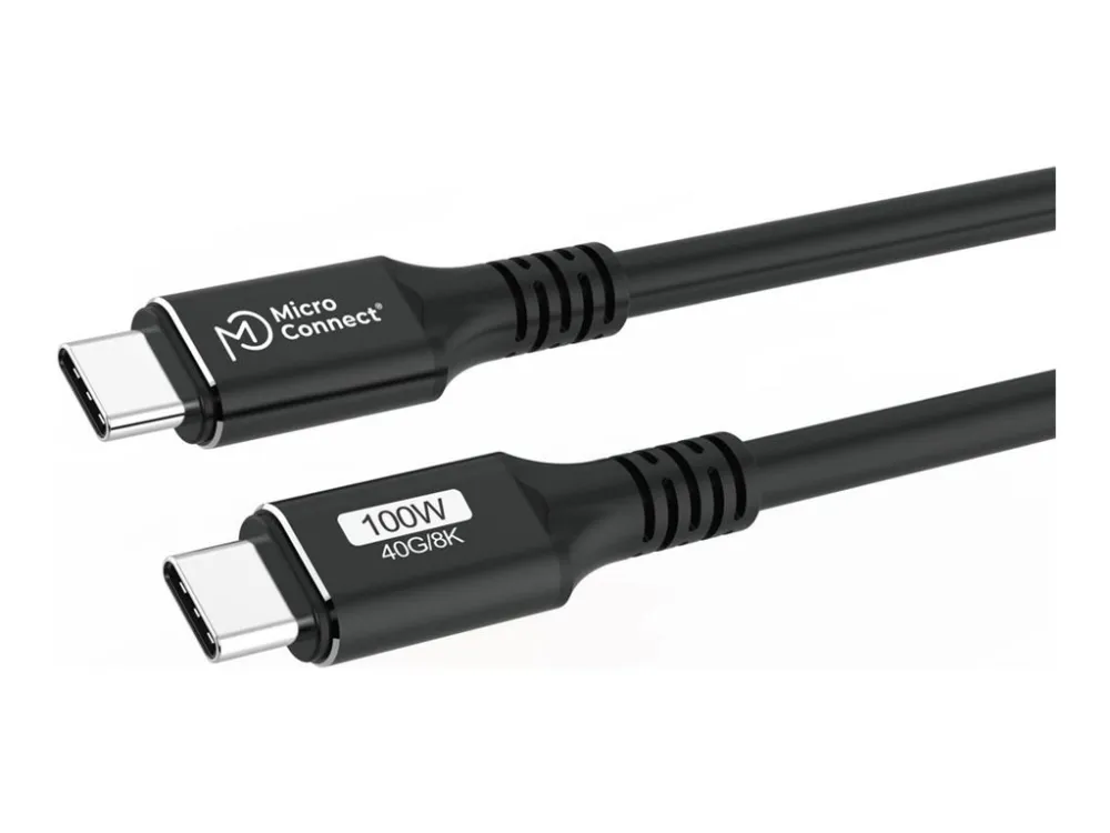 MicroConnect Premium - USB-kaapeli - USB-C (uros) - USB-C (uros) - USB4 Gen3x2 - 20 V - 5 A - USB Power Delivery (100 W), jopa 40 Gbps tiedonsiirtonopeus - musta