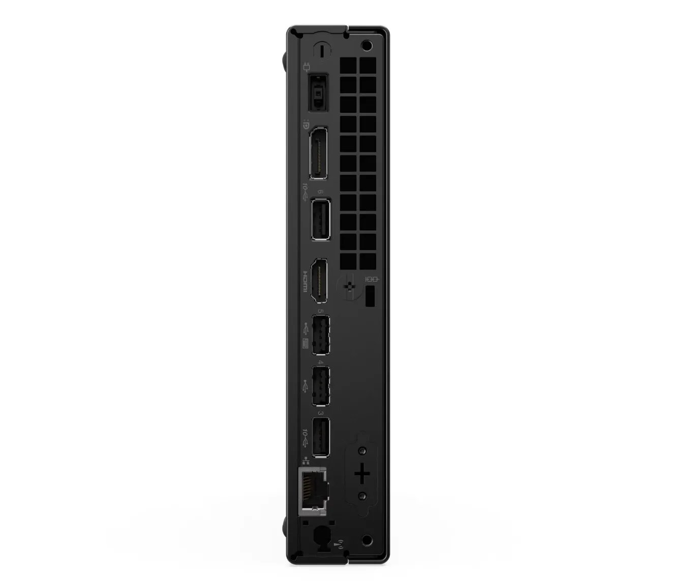 | Etuliitännät | 1 x USB-C® (USB 10 Gbps / USB 3.2 Gen 2) tiedonsiirtoon ja 5 V @ 3 A lataukseen 1 x USB-A (USB 10 Gbps / USB 3.2 Gen 2) Always On -toiminnolla ja 5 V @ 2,1 A lataukseen 1 x yhdistetty kuuloke-/mikrofoniliitäntä (3,5 mm) |