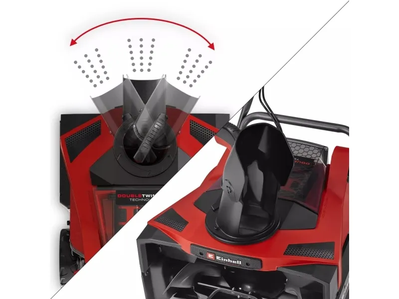 Electrically rotable snow ejection The direction of snow ejection can be conveniently controlled electronically on the guide bar. The ejection pipe is continuously rotable up to 220°, so that the snow ejection can be precisely directed.