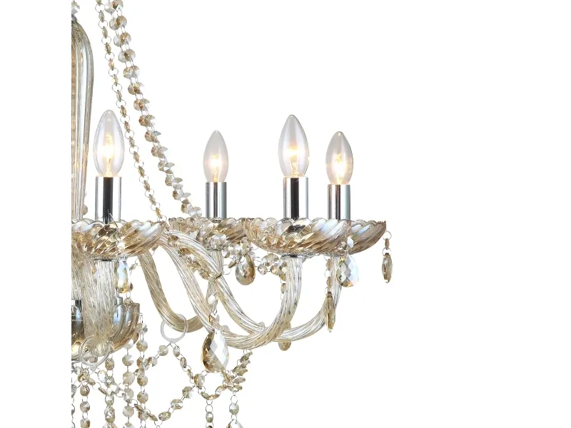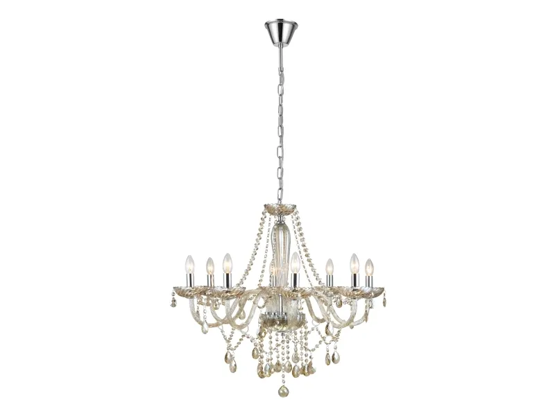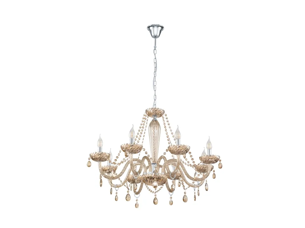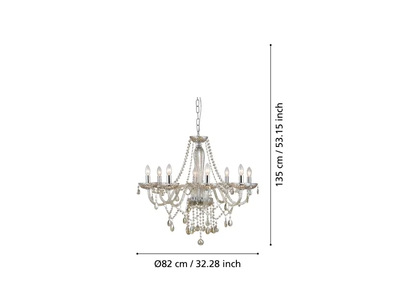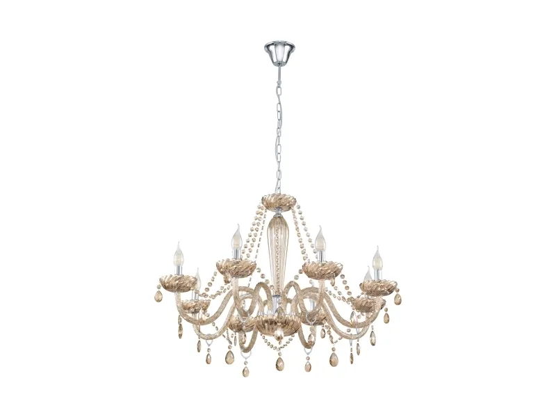 Kronlysekronen BASILANO er fremstillet af cognacfarvet glas med metaldele i kromfarve. De otte buede arme er kombineret med en række værdifulde brilantglas, som fuldender det klassiske lysekronedesign på elegant vis. Brillantglaselementerne skaber desuden et funklende og eksklusivt udseende, når kronlysekronen tændes. Den elegante og imponerende lysekrone med en diameter på 82 cm passer perfekt ind i en moderne boligstil og udgør et stemningsfuldt blikfang i ethvert rum – uanset om det er i stuen, soveværelset eller spisestuen over spisebordet. Lyskilder er ikke inkluderet. Lampen passer til enhver lyskilde med E14-fatning. BETULIA gulvlampen består af en cylindrisk metalfod i sort, hvortil der er fastgjort en lang, ligeforet metalstang i børstet messing. Det lange metalhus blev kombineret med et lampehoved lavet af opalglas. Nem tænding og slukning er mulig via en fodkontakt på kablet. Gulvlampen i et minimalistisk design passer ind i forskellige indretningsstilarter og giver stilfuld belysning i ethvert rum - uanset om det er i stuen, soveværelset, gangen eller spisestuen. Pæren medfølger ikke. Armaturet er velegnet til enhver pære med en E27-sokkel.