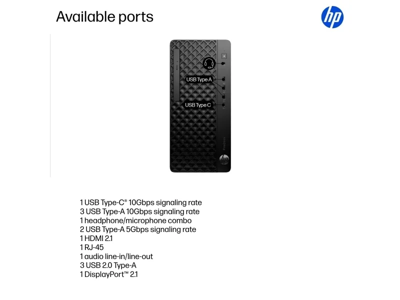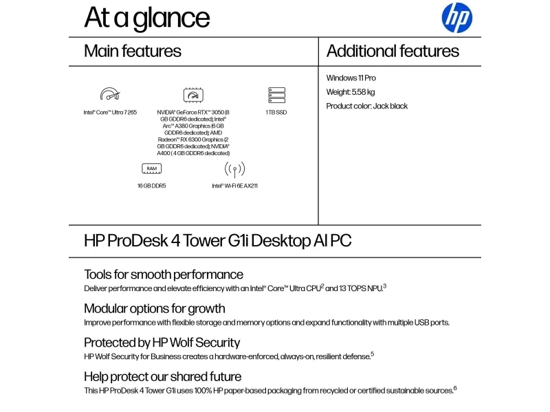 HP ProDesk 4 Tower G1i Desktop AI PC, Intel Core Ultra 7, 265, 16 GB, DDR5-SDRAM, 1 TB, Windows 11 Pro