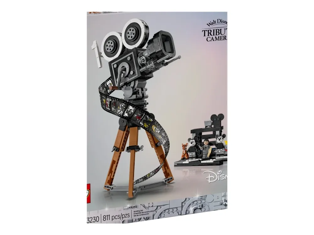 Aikuisille Disney-faneille suunnattu LEGO® ǀ Disney Walt Disneylle omistettu kamera (43230) setti on varma katseenvangitsija. Lukuisten yksityiskohtien setissä on vintagetyylinen elokuvakamera. Sen saranakiinnitteinen takapaneeli sisältää yllätyksen ja filminpätkän, jossa on kuvia 20 historiallisesta Disney-elokuvasta. Mukana myös ohjaajan klaffi, jossa tila 3 LEGO ǀ Disney minihahmolle, 2 LEGO eläinhahmoa ja monitasokamera, jonka 3:lla painetulla näytöllä kertovat, kuinka Disneyn Vanha mylly ‑lyhytfilmi tehtiin. Setti sisältää myös kääntökammen, liukuvan vastavalosuojan ja vanhanaikaisen elokuvakameran kierrettäviä objektiiveja sekä klaffin, jossa on liikutettava alapalkki.