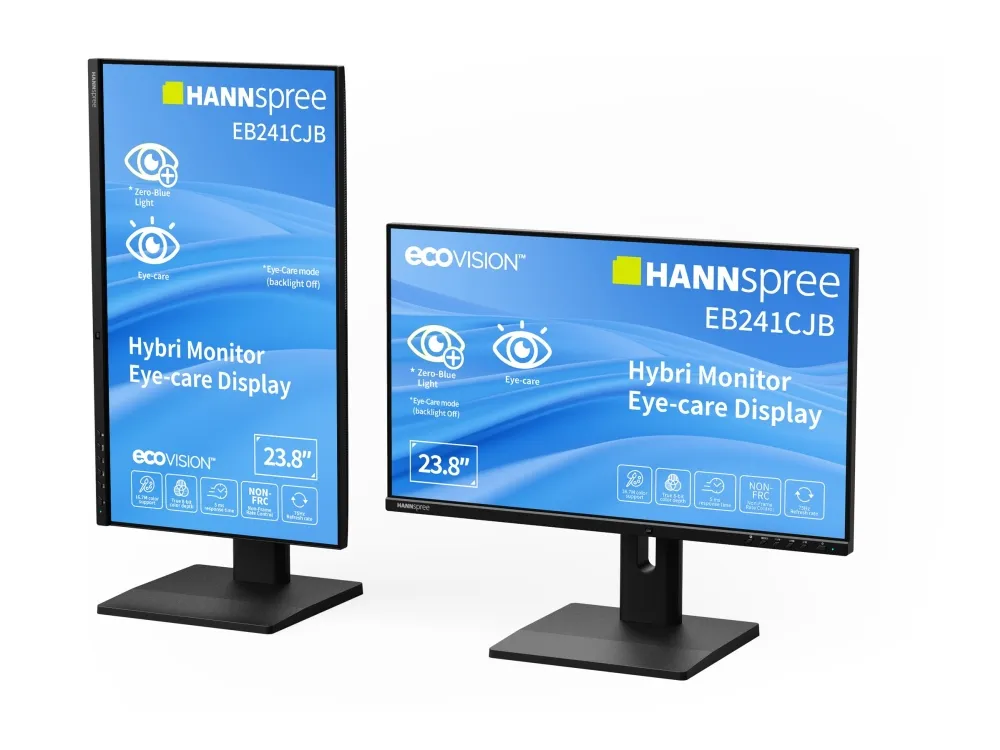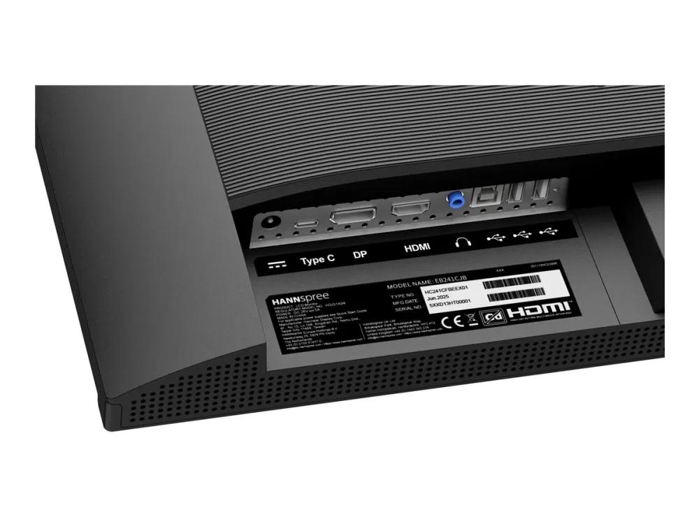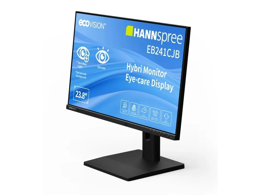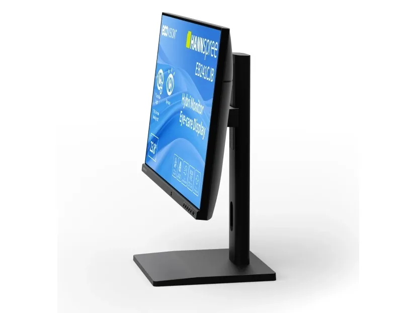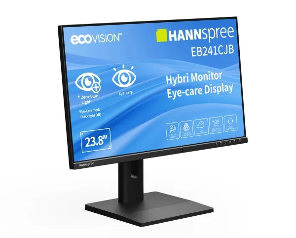 The Hannspree Hybri is a 23.8-inch desktop monitor designed to enhance the viewing experience with its Full HD (1920 x 1080) resolution and advanced display technologies. Featuring a flicker-free panel and blue light protection, this monitor supports a comfortable viewing environment, reducing eye strain during long usage sessions. The ambient light sensor and low reflectance anti-glare surface ensure a clear and vibrant image even in varying lighting conditions, making it suitable for any workspace. With a robust set of connectivity options, including HDMI, DisplayPort, and USB-C, the monitor provides versatility for connecting multiple devices. The built-in USB hub simplifies device management, allowing users to connect and power peripherals easily. To customize the viewing angle, the Hybri offers height, tilt, pivot, and swivel adjustments, catering to ergonomic preferences for an enhanced user experience.
