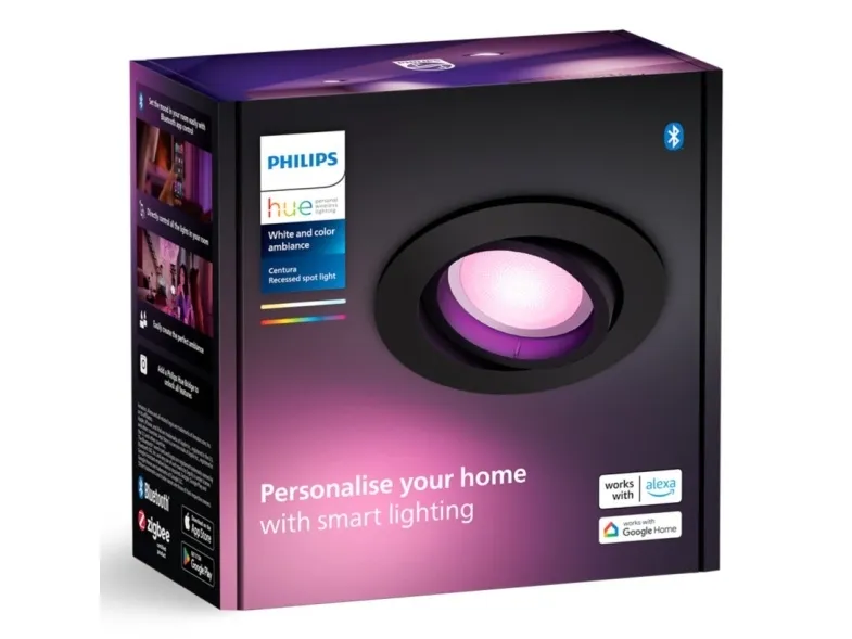 Philips Hue White and Color Ambiance Centura - Upotettu kohdevalo - LED-spottilamppu - GU10 - 4.2 W - luokka E - 16 miljoonaa väriä / lämpimästä viileään valkoiseen valoon - 2000-6500 K - pyöreä - musta