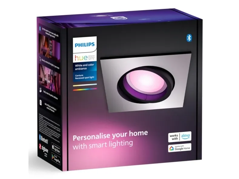 Philips Hue White and Color Ambiance Centura - Upotettu kohdevalo - LED-spottilamppu - GU10 - 4.2 W - luokka E - 16 miljoonaa väriä / lämpimästä viileään valkoiseen valoon - 2000-6500 K - neliö - alumiini