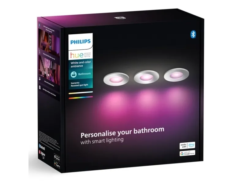 Philips Hue White and Color Ambiance Xamento - Upotettu kohdevalo - LED-spottilamppu - GU10 - 4.2 W - luokka E - 16 miljoonaa väriä / lämpimästä viileään valkoiseen valoon - 2000-6500 K - pyöreä - kromi (pakkaus sisältää 3)
