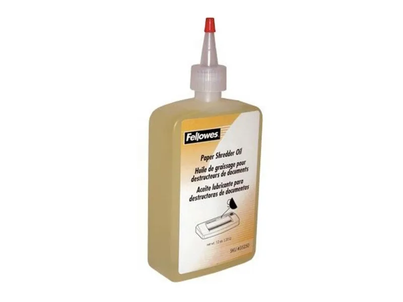 Fellowes POWERSHRED Shredder Lubricant keeps your shredder running at peak performance by conditioning the cutters and extending the life of your shredder. For best results, oil shredder each time you empty the wastebasket or a minimum of twice a month. 12 oz plastic squeeze bottle with extended nozzle ensures complete coverage.