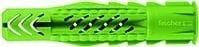 The fischer universal fixing UX GREEN is a plastic fixing made of high-quality nylon. At least half of the materials used to create the granules for producing the anchor are gained from sustainable raw materials. These do not compete with cultivation areas for food and feed products. The UX GREEN has the same performance properties same and load-carrying properties as the grey-coloured original. The fischer universal fixing expands in solid building materials and knots in hollow building materials for maximum hold. For this reason the fischer UX is always the correct choice - even with unknown building materials. The edge prevents slippage during assembly. The fischer universal fixing UX GREEN with an edge is suitable for through-type installation. The fischer universal fixing UX GREEN is, for example, recommended for fixing lights, curtain rails, lightweight cupboards, and cornicing.
