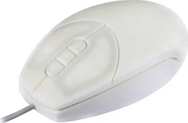 - High resolution for smooth and accurate cursor handling\n- Ergonomic design for right and left hander\n- No hollow spaces for dirt and bacteria to accumulate\n- Thorough surface disinfection by spray/wipe sanitizing\n- Easy cleaning process with fast drying time\n- Suitable for most common hospital disinfectant solutions\n- Personnel safety: No risk of germ proliferation by submersion cleaning\n- No re-contamination of open surfaces by polluted cleaning fluids flowing off the mouse\n- No risk of germ transmission by excess fluids leaking or dripping off the product\n- No hollow spaces for polluted cleaning fluids to form a nutrient solution and grow bacteria
