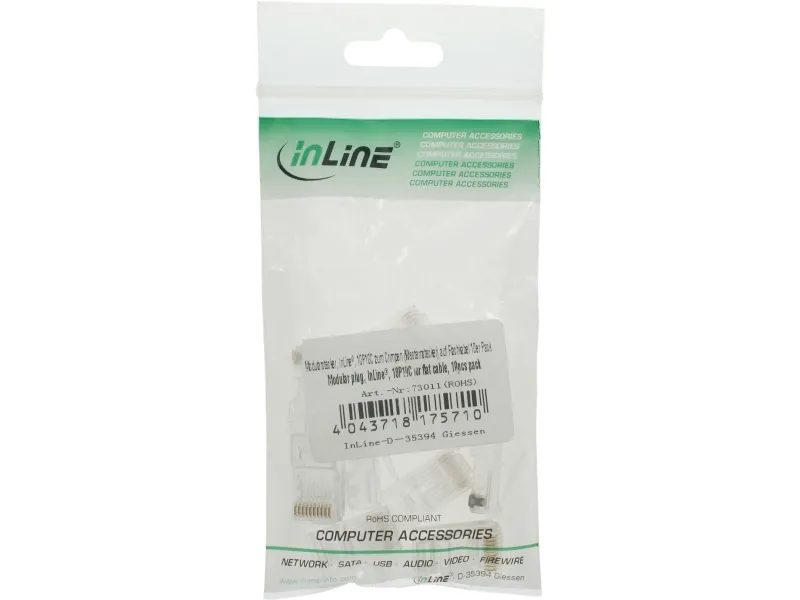 Modular plug, InLine®, 10P10C for crimping (Registered jack) to ribbon cable.