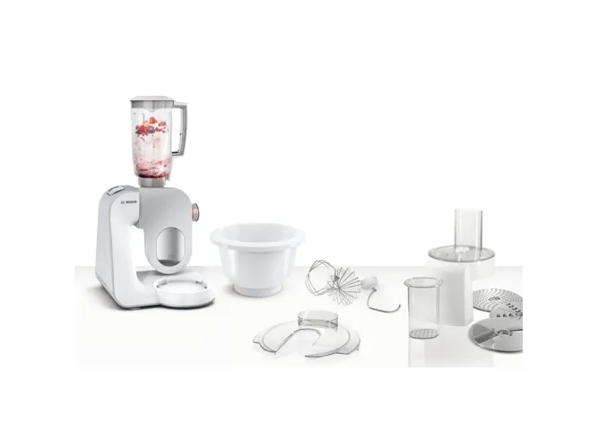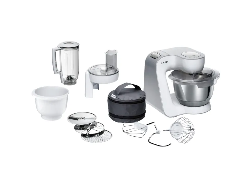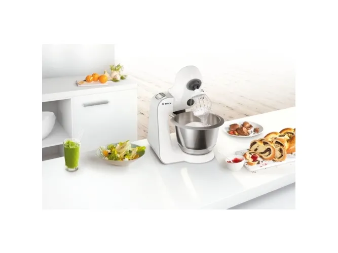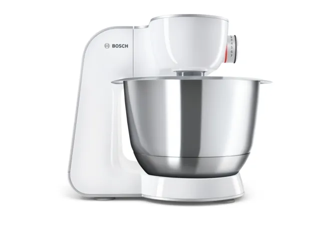 Bosch MUM58234. Bowl capacity: 3.9 L, Product colour: White, Cord length: 1.1 m. Bowl material: Stainless steel. Power: 1000 W. Width: 282 mm, Depth: 280 mm, Height: 271 mm. Package weight: 8.7 kg