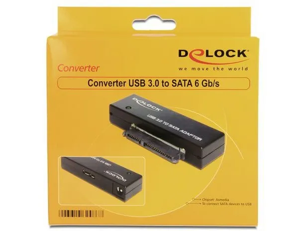 This Delock converter can be connected to your PC or notebook via USB port and enables the connection of HDDs, SSDs and other drives with SATA 22-pin interface. The SATA 6 Gb/s specification supports a higher data transfer rate, if your device complies with SATA 6 Gb/s and if the converter is connected to a USB 3.0 port of your system.