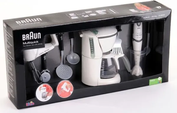KITCHEN SET, Existing of- BRAUN Hand mixer (batt.op.)- BRAUN Coffee maker (batt.op.)- BRAUN Hand blender (batt.op.) with measuring cup- pizza cutter- pasta spoon- ladle- turner- skimmer- stirring spoon