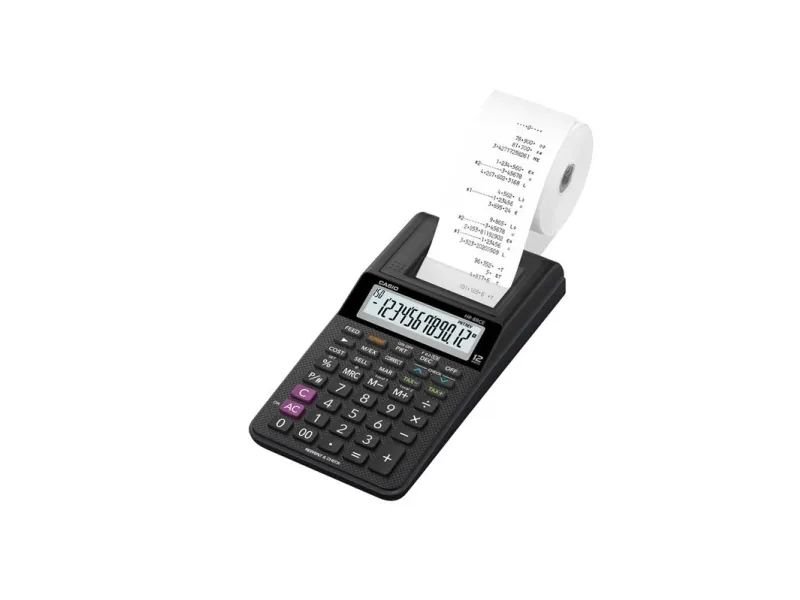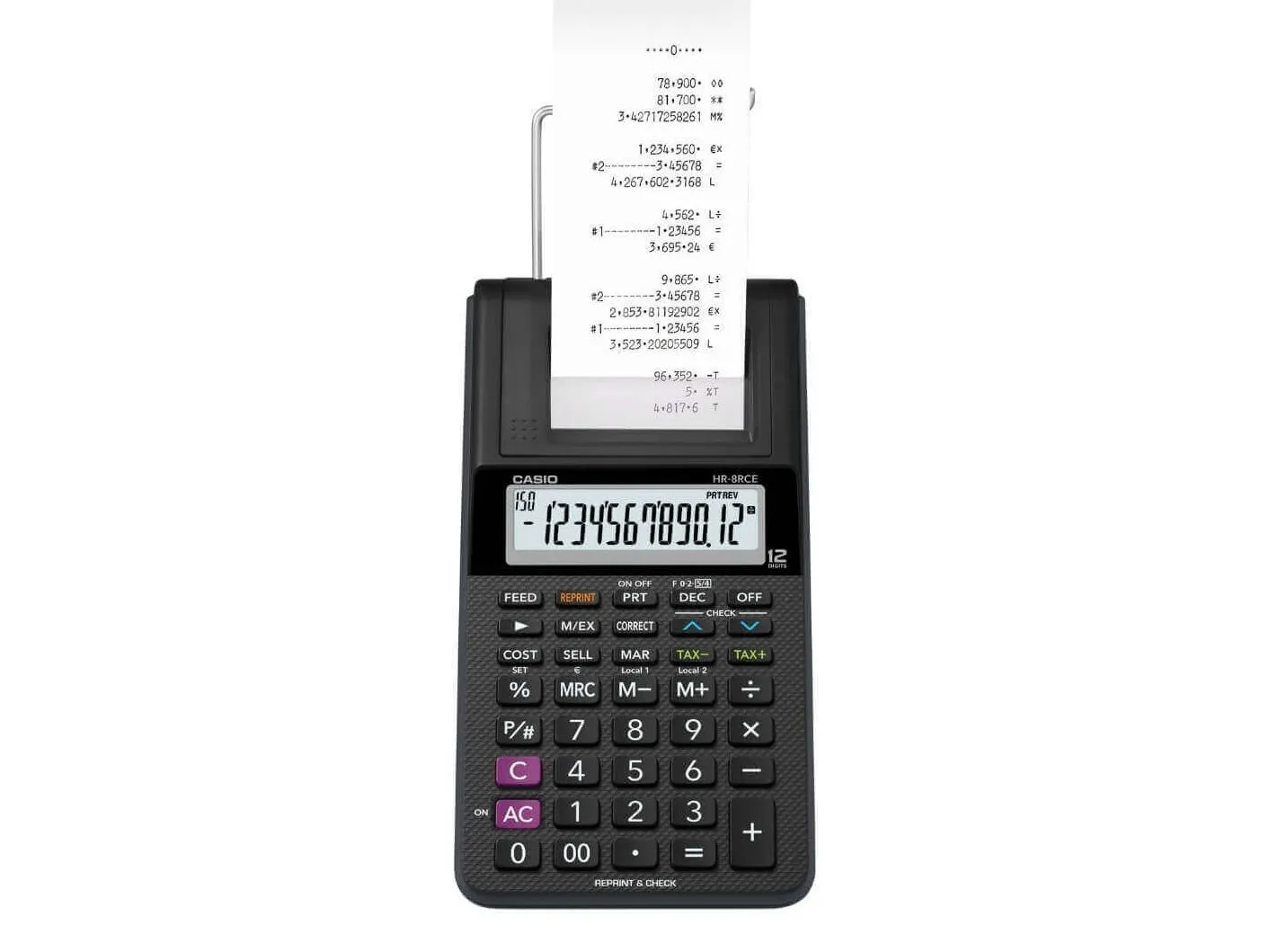 Casio HR-8RCE, Työpöytä, Tulostuslaskin, 12 lukua, 1 linjat, Akku, Musta