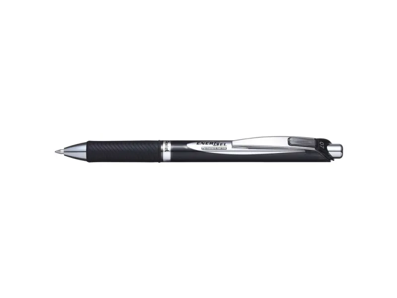 Pentel EnerGel, Clip-on retractable ballpoint pen, Black, Black, Medium, Round, Ambidextrous