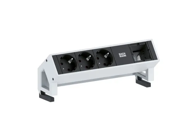 Aluminium profile; power input: 0.2 m H05VV-F 3G 1.5 mm2 with GST18; incl. mounting bracketBachmann Desk 2. Cable length: 0.2 m, Housing material: Aluminium, Product colour: Black. AC outlets quantity: 3 AC outlet(s). Number of products included: 1 pc(s)