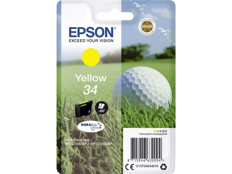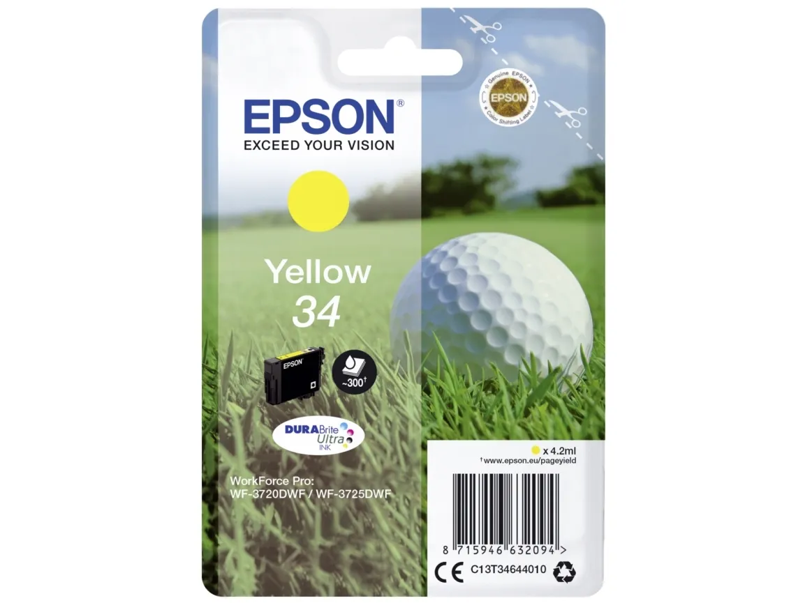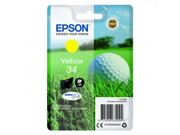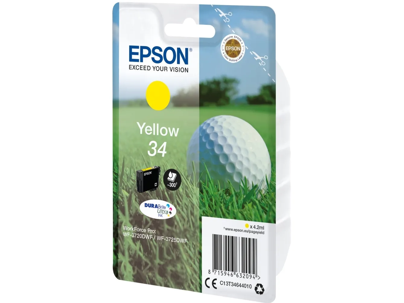 Epson Golf ball Singlepack Yellow 34 DURABrite Ultra Ink, Perusvärintuotto, Väriainepohjainen muste, 4,2 ml, 300 sivua, 1 kpl