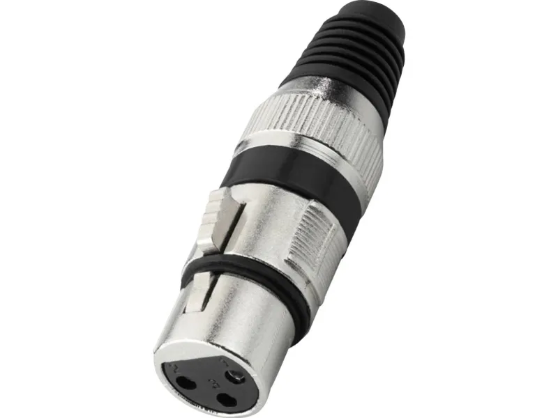 XLR inline jack, 3 poles;#Metal version;#Nickel-plated contacts;#Cable bending protection and self-adjusting clamps as strain relief;#Black colour coding;;Manufacturer information:;MONACOR INTERNATIONAL GmbH & Co. KG
