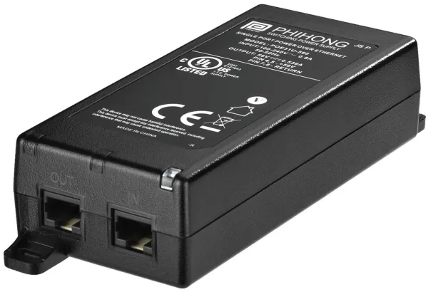 Power over Ethernet midspan,;for feeding the supply voltage into a PoE network at any position required. For this purpose, an existing network cable is fed through.;#1 port (RJ45) with 10/100/1,000 Mbps;#Output power: 30 W;#Output voltage: DC 56 V;#Compatible with standard IEEE802.3at;#Power supply: ˜100-240 V/50-60 Hz;#Dimensions: 65 x 40 x 165 mm;#Weight: 220 g;;Please order matching mains cable AAC-180/SW or AAC-182/SW separately.;Manufacturer information:;Phihong Technology Co. Ltd.