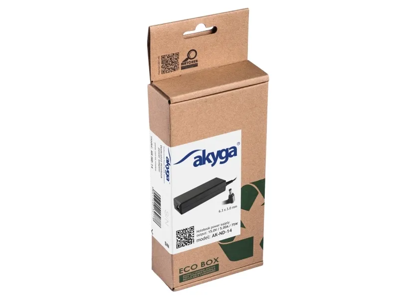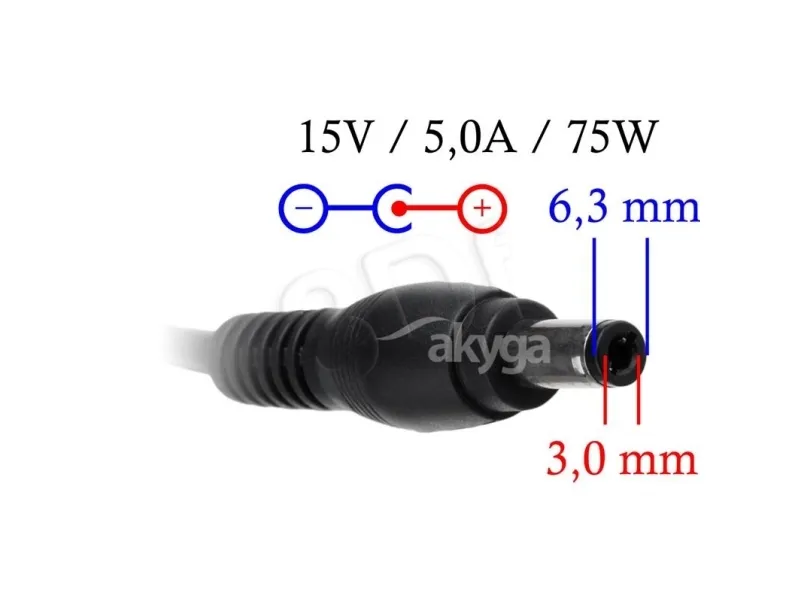 Akyga® AK-ND-14 is a notebook dedicated power supply for devices powered with 15V/5A, 75W power and 6.3*3.0 mm plug.