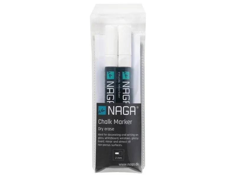 Chalkmarker NAGA hvid 2 mm - til glastavler - (2 stk.)