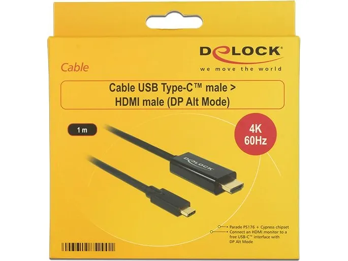 This cable enables the connection of an HDMI monitor to a PC or laptop with USB-C or Thunderbolt 3 port.