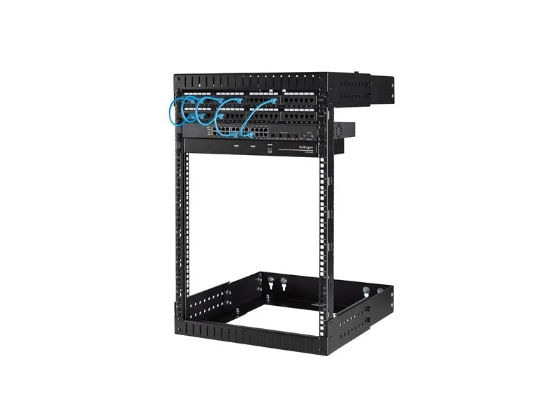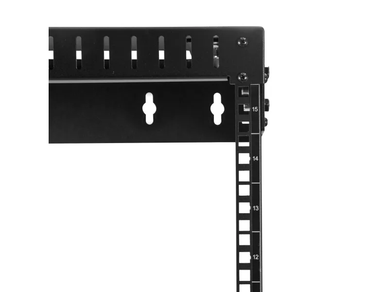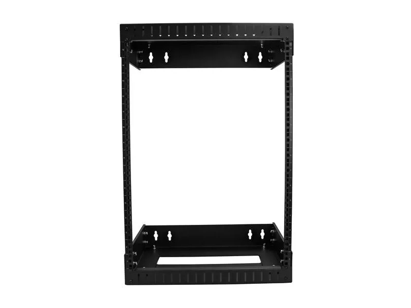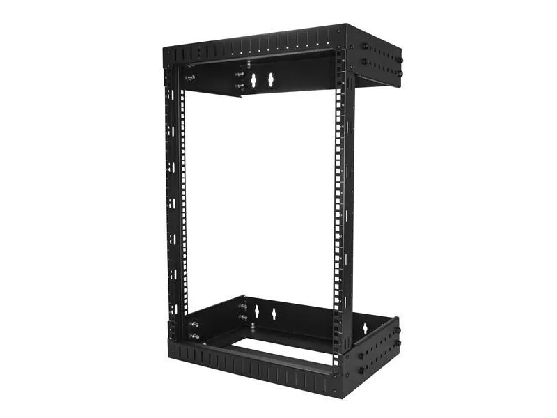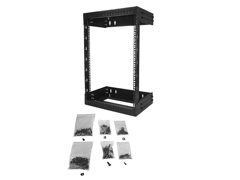 This open frame wallmount server rack provides 15U of storage, helping you to save space and stay organized. The equipment rack features an adjustable depth and can hold a total of up to 198 lb (90 kg).