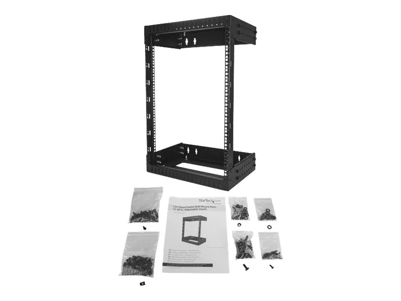 StarTech.com 15U 19" Wall Mount Network Rack, Adjustable Depth 12-20" 2 Post Open Frame Server Room Rack for AV/Data/ IT Communication/Computer Equipment/Switch with Cage Nuts & Screws - 15U Adjustable Rack - teline - 15U