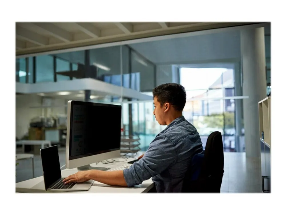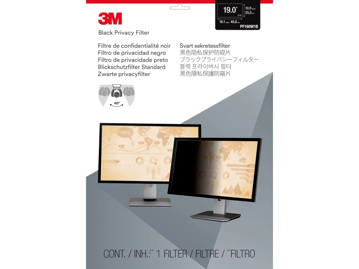 3M-yksityisyyssuodattimet tarjoavat maailmanluokan "black out" -yksityisyyden 60 asteen katselukulman ulkopuolella olevilta sivuilta ja luovat samalla erinomaisen katselukokemuksen suorista näkymistä. Käännettävissä kiiltävän puolen ja häikäisyä vähentävän mattapuolen välillä, joka auttaa vähentämään heijastuksia ja piilottamaan sormenjäljet, jotta voit nauttia koskemattomasta kuvan selkeydestä.