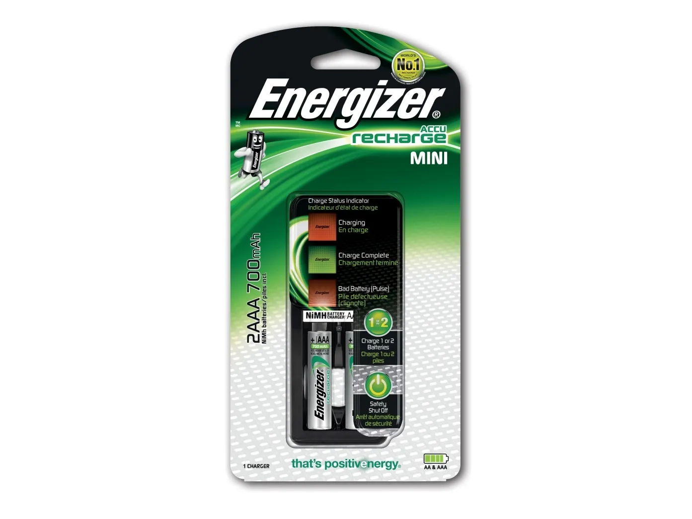Energizer Mini Charger, Nikkelimetallihybridi (NiMH), Ylivaraus, AA, AAA, 2 kpl, Sisältää paristot